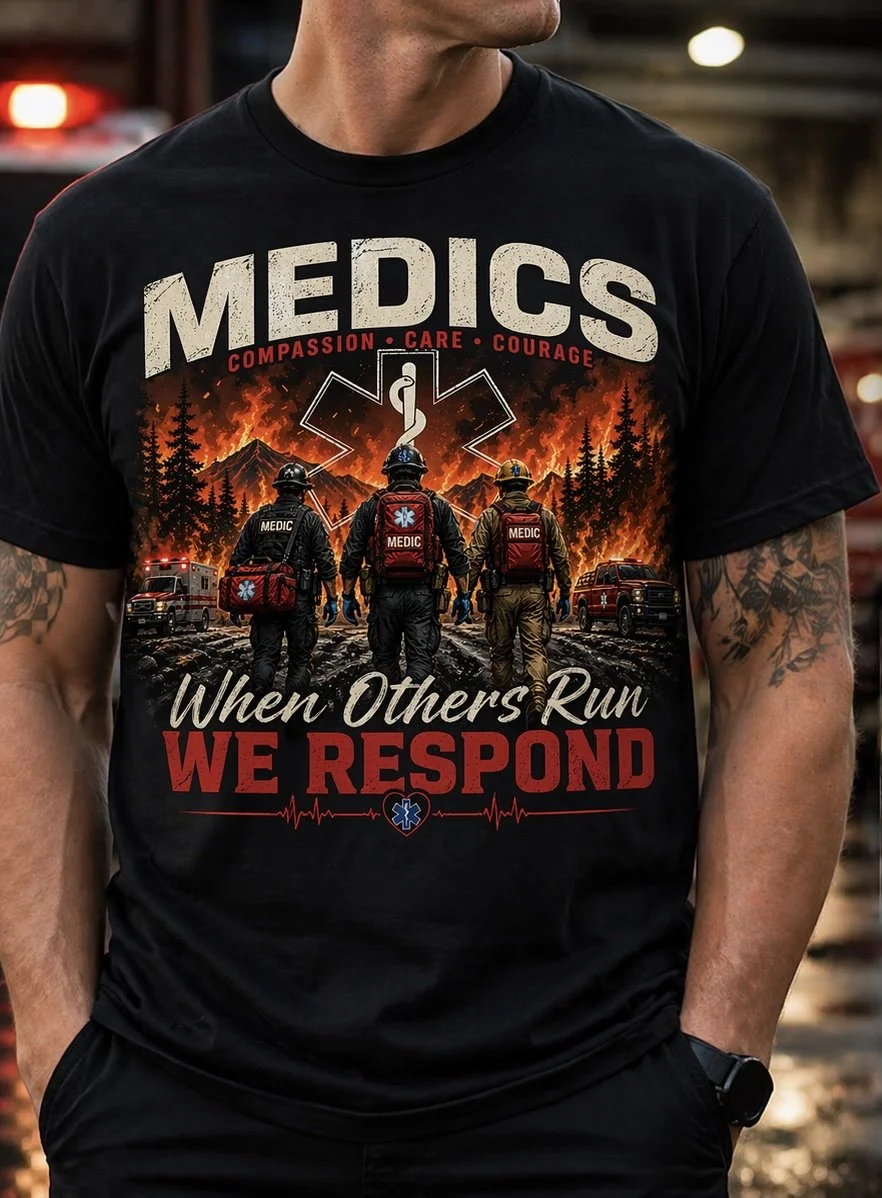 Shop › Kid size medic Tshirt Image 1 of 1 Kid size medic Tshirt $20.00 50% of proceeds goes to those who suffered loss in the Brantley Wildfires Size: Select Size Kid sm Kid Md Kid lg Color: Select Color White Black Grey Add To Cart Added! 50% of proceeds goes to those who suffered loss in the Brantley Wildfires